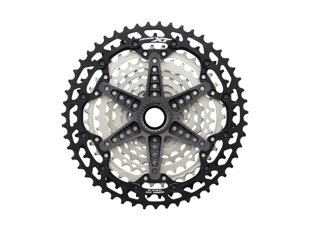 Shimano zieht nach und setzt bei der XT M8100 Gruppe auch auf einen 12-fach Antrieb. Im Gegensatz zur Konkurrenz lassen die Japaner dem Biker jedoch die Wahl, ob er eine maximale Bandbreite (10-51 Zähne) oder eine enger abgestufte Kassette mit geringeren Trittfrequenzsprüngen beim Schalten bevorzugt (10-45 Zähne). Letztere sollte besonders XC- und Marathon-Racern entgegenkommen, welche so beim Pedalieren im optimalen Frequenzbereich ihre Kräfte schonen können.